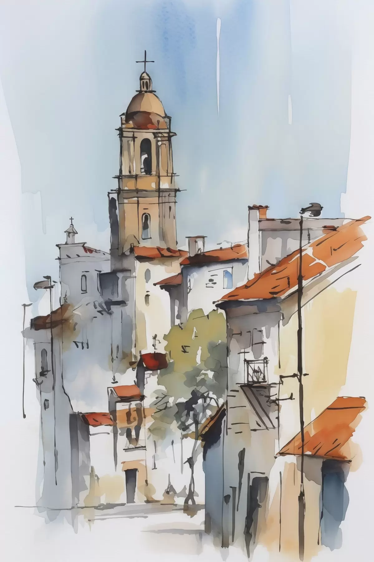 Poster Acquerello che imita il paesaggio urbano Nr f46120