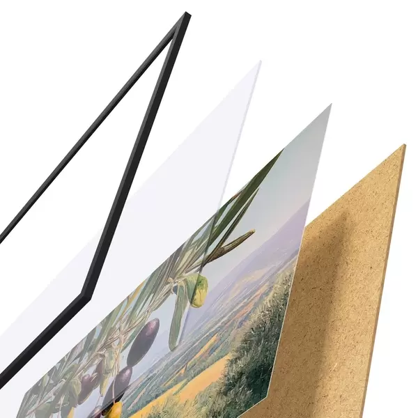 Il poster è composto da cornice, plexiglass, immagine stampata e supporto in truciolato. Il poster può essere immediatamente appeso alla parete grazie ai supporti sul retro.