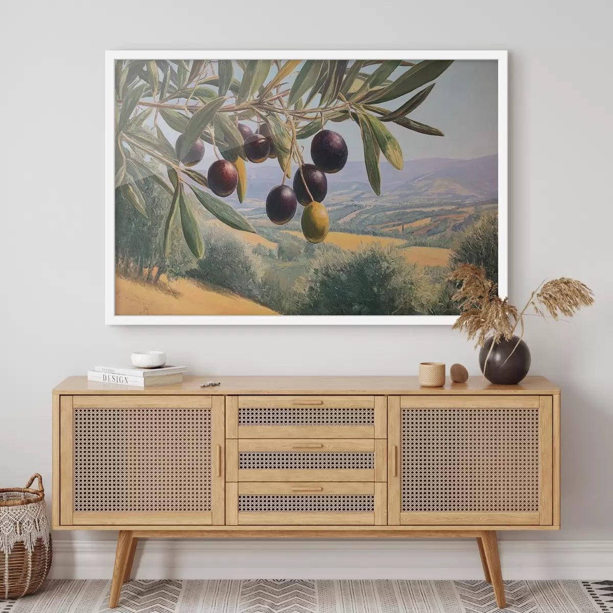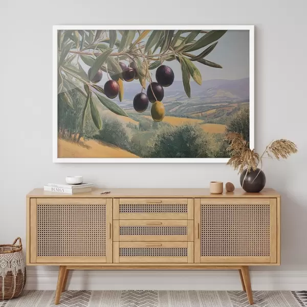 Poster Ramo d'ulivo con frutti scuri su uno sfondo estivo f46150
