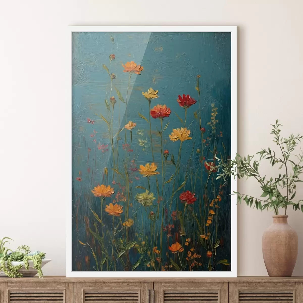 Poster Fiori selvatici su uno sfondo turchese intenso f46169