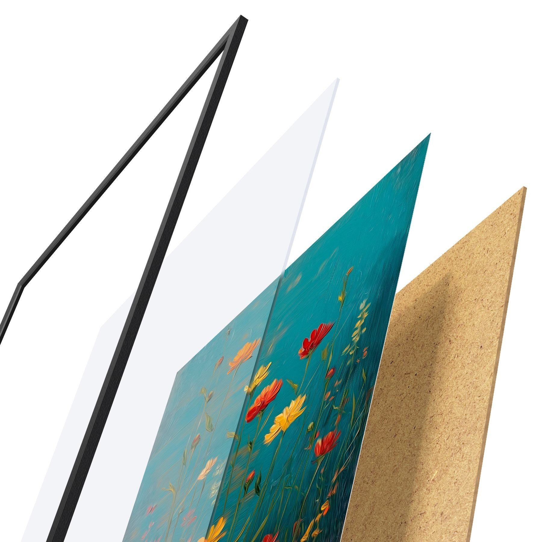 Il poster è composto da cornice, plexiglass, immagine stampata e supporto in truciolato. Il poster può essere immediatamente appeso alla parete grazie ai supporti sul retro.