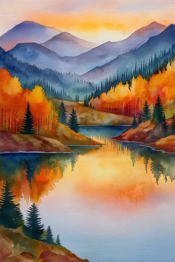 Poster Paesaggio autunnale con montagne riflesse in un lago calmo Nr f46174