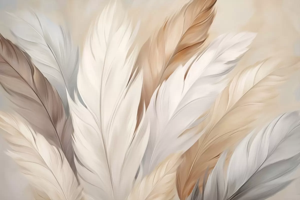 Poster Morbide piume nei toni del beige e del grigio Nr f46190