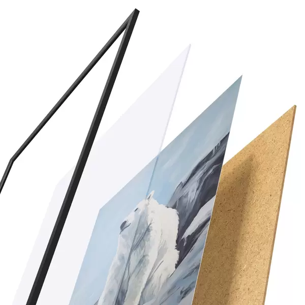 Il poster è composto da cornice, plexiglass, immagine stampata e supporto in truciolato. Il poster può essere immediatamente appeso alla parete grazie ai supporti sul retro.