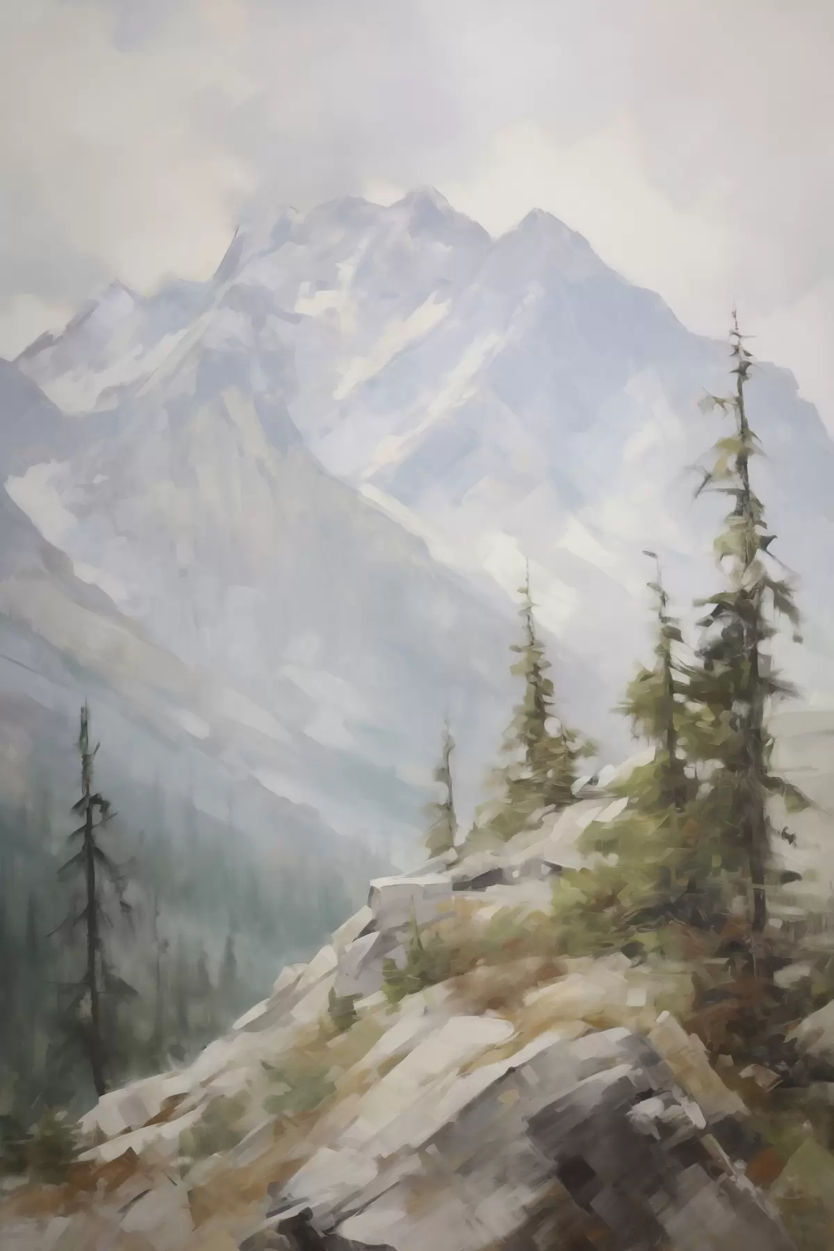 Poster Abeti rossi sullo sfondo delle montagne f46202
