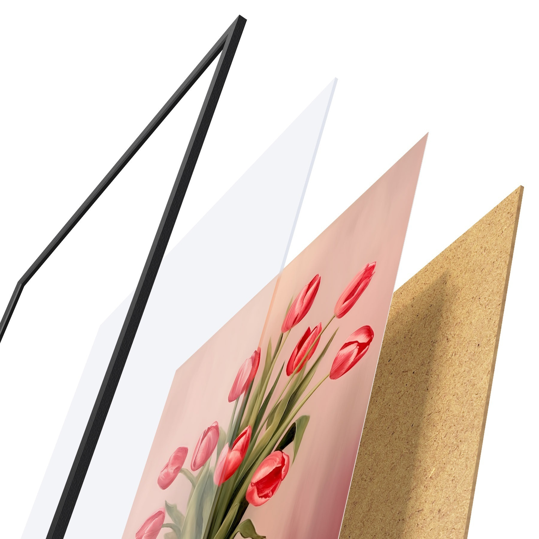 Il poster è composto da cornice, plexiglass, immagine stampata e supporto in truciolato. Il poster può essere immediatamente appeso alla parete grazie ai supporti sul retro.