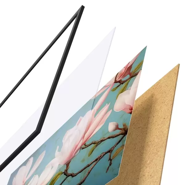 Il poster è composto da cornice, plexiglass, immagine stampata e supporto in truciolato. Il poster può essere immediatamente appeso alla parete grazie ai supporti sul retro.