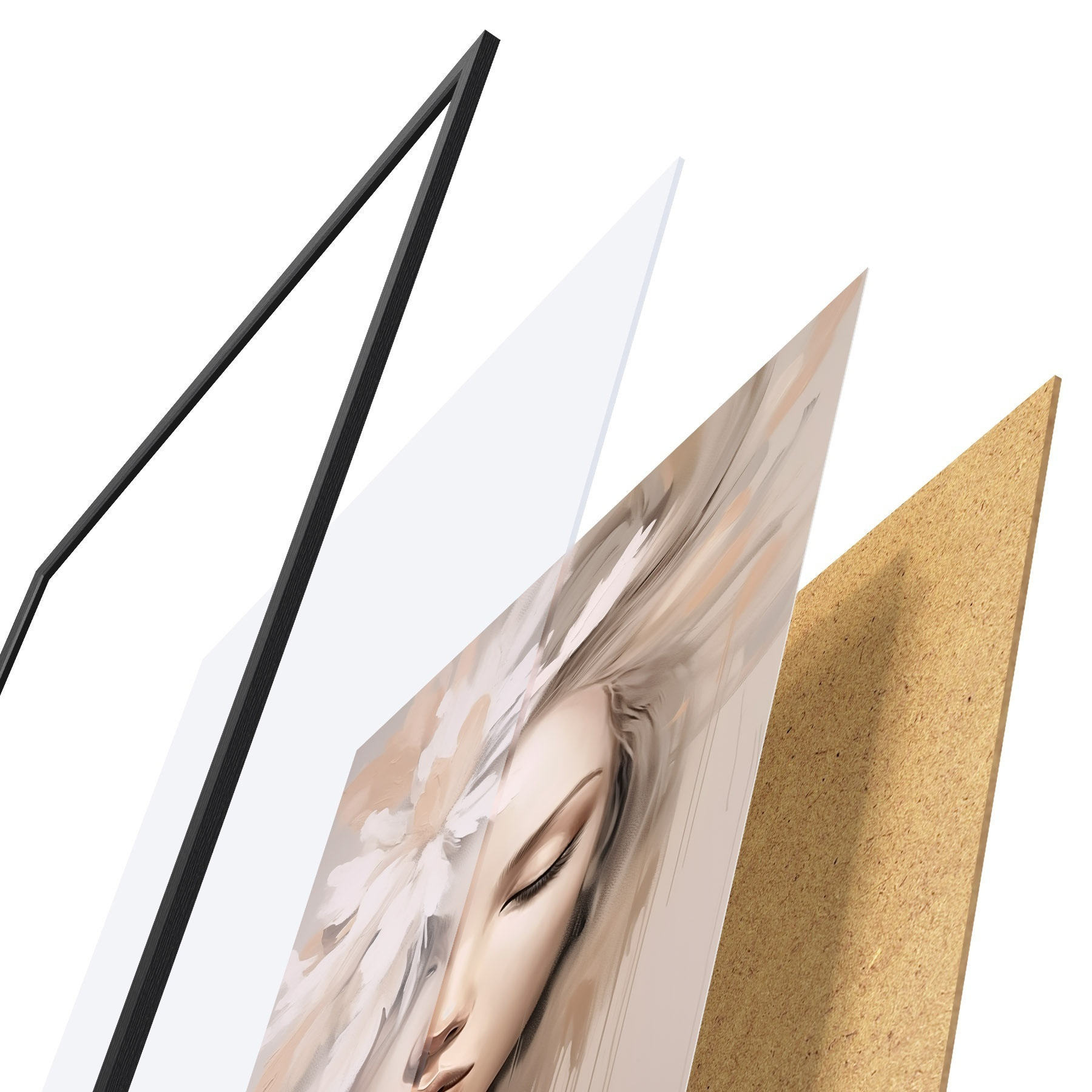 Il poster è composto da cornice, plexiglass, immagine stampata e supporto in truciolato. Il poster può essere immediatamente appeso alla parete grazie ai supporti sul retro.