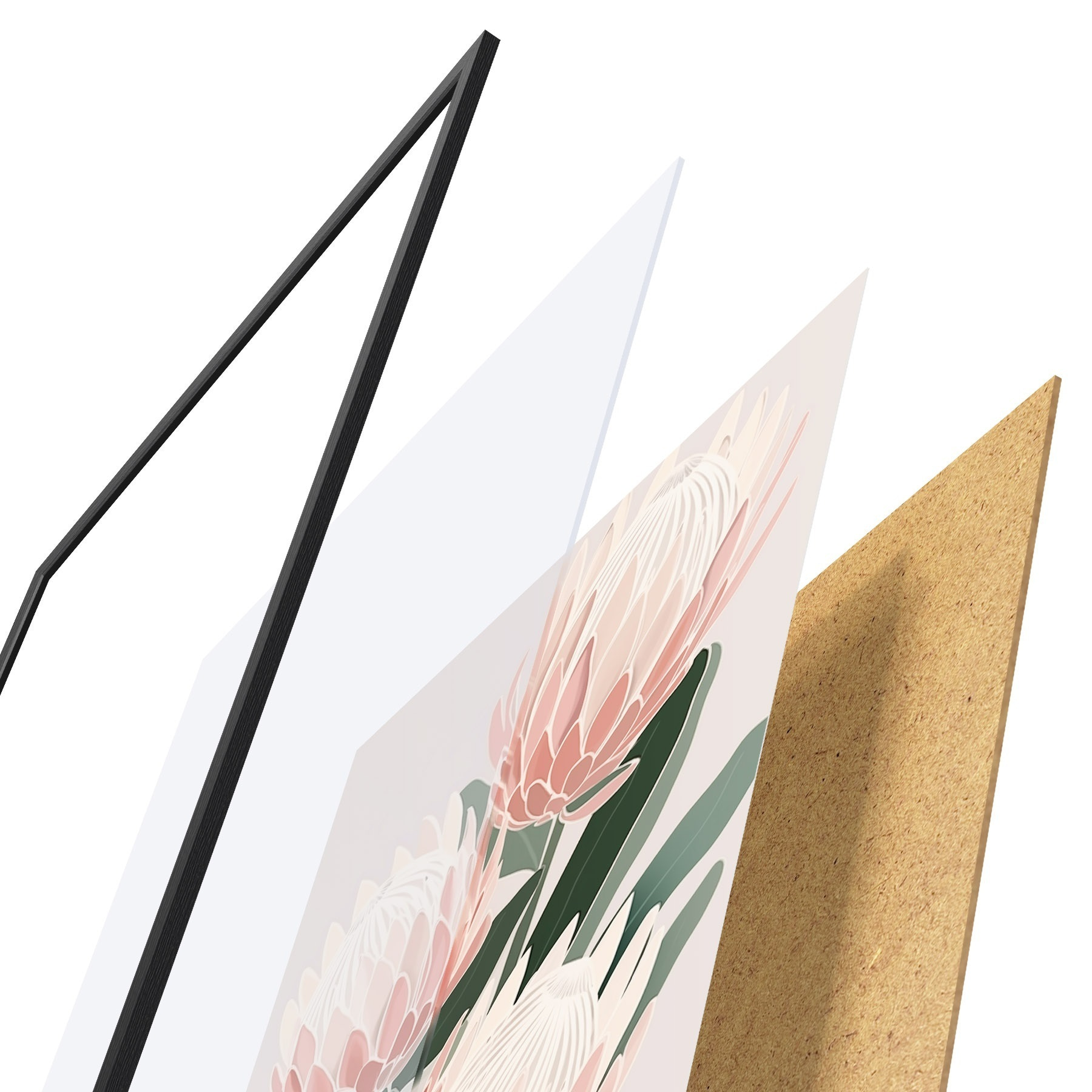 Il poster è composto da cornice, plexiglass, immagine stampata e supporto in truciolato. Il poster può essere immediatamente appeso alla parete grazie ai supporti sul retro.
