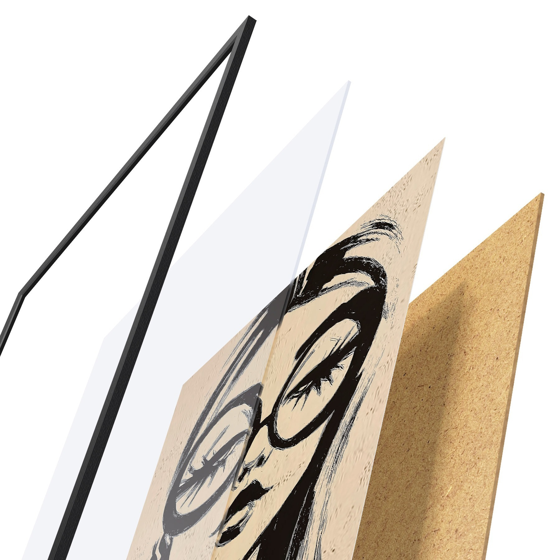 Il poster è composto da cornice, plexiglass, immagine stampata e supporto in truciolato. Il poster può essere immediatamente appeso alla parete grazie ai supporti sul retro.
