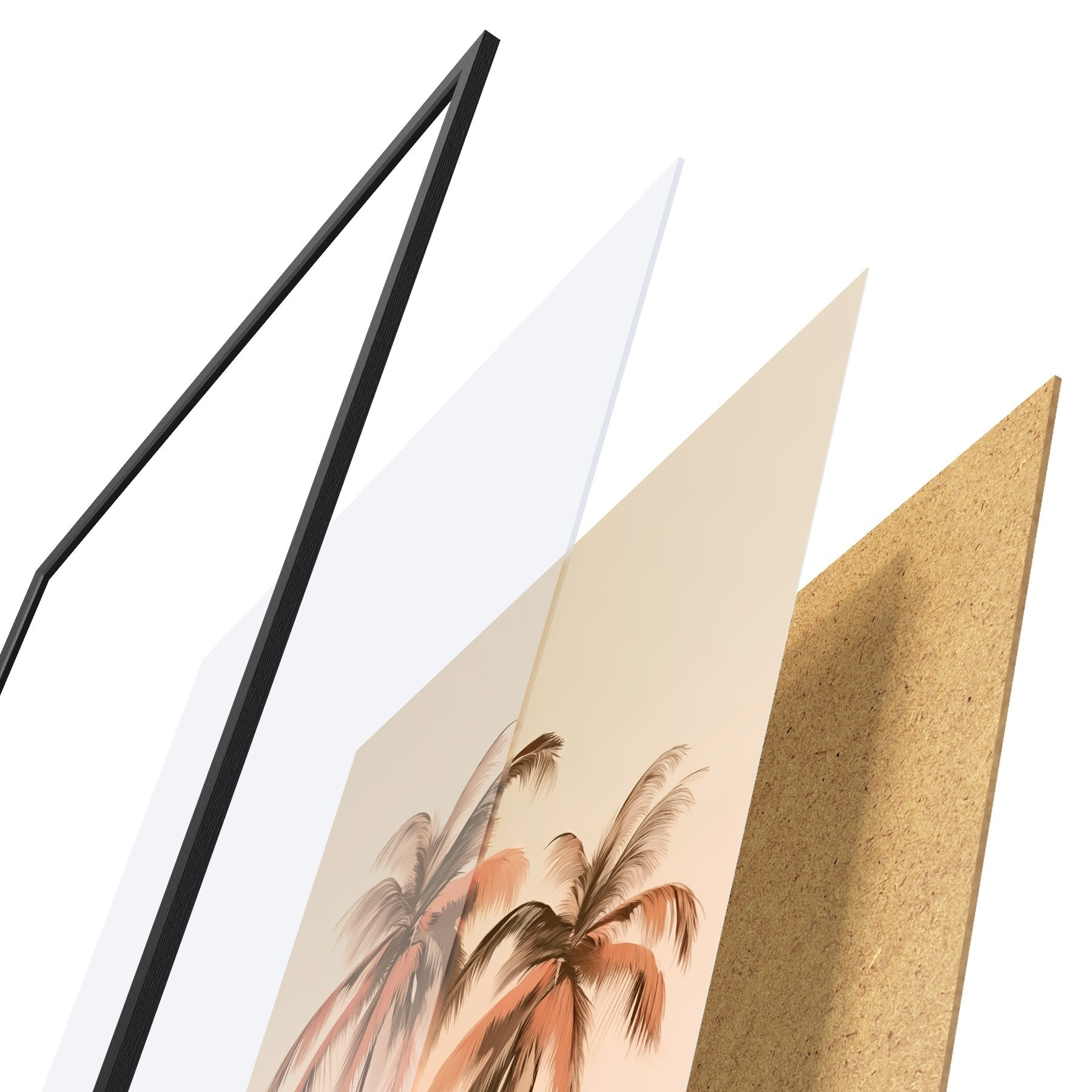Il poster è composto da cornice, plexiglass, immagine stampata e supporto in truciolato. Il poster può essere immediatamente appeso alla parete grazie ai supporti sul retro.