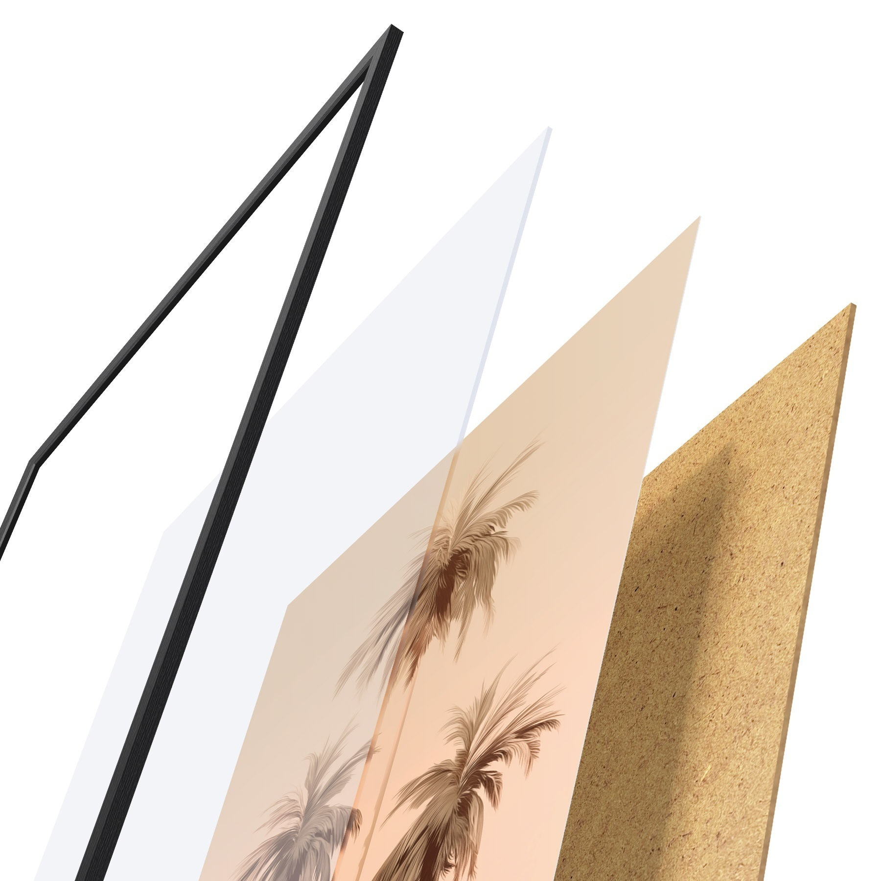 Il poster è composto da cornice, plexiglass, immagine stampata e supporto in truciolato. Il poster può essere immediatamente appeso alla parete grazie ai supporti sul retro.