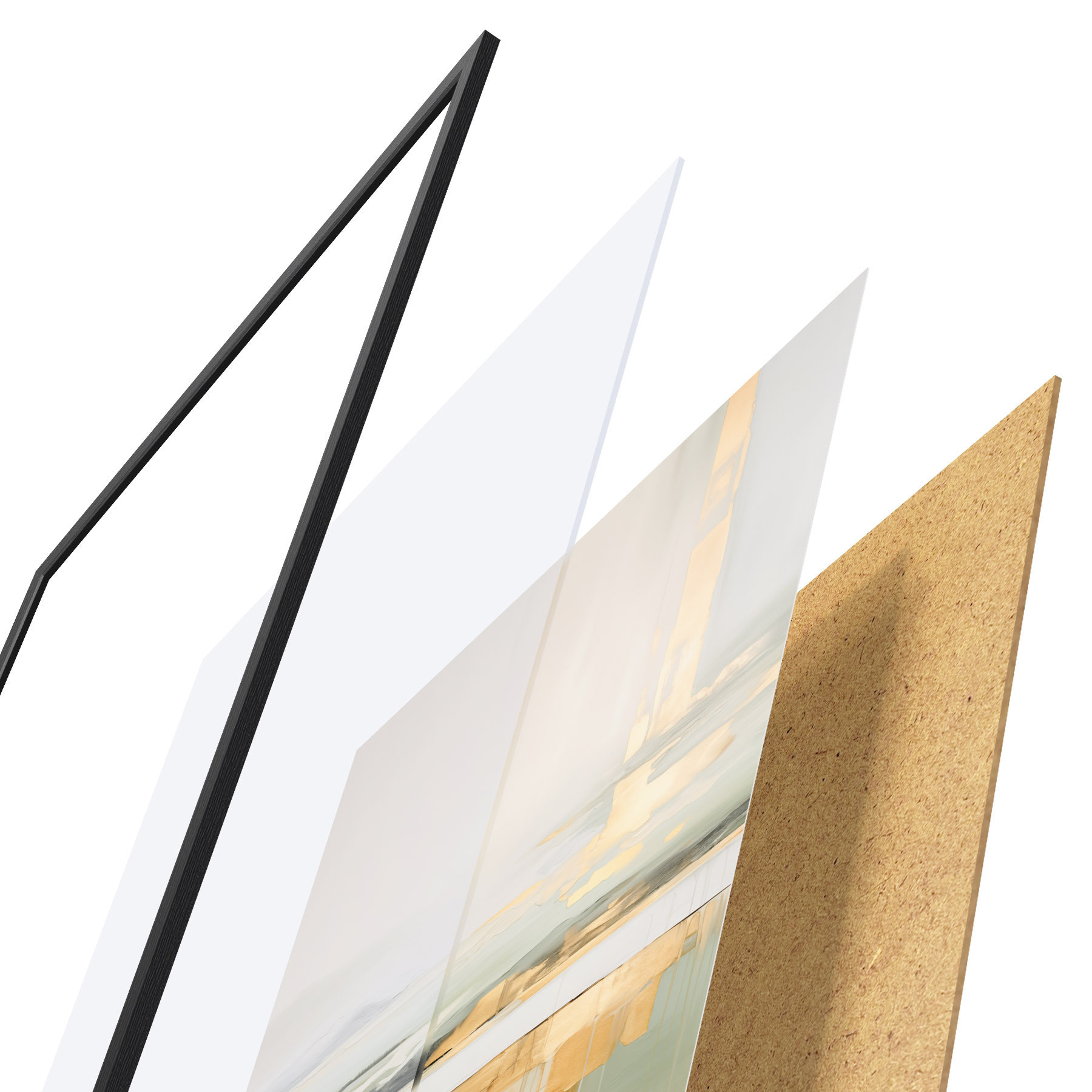 Il poster è composto da cornice, plexiglass, immagine stampata e supporto in truciolato. Il poster può essere immediatamente appeso alla parete grazie ai supporti sul retro.