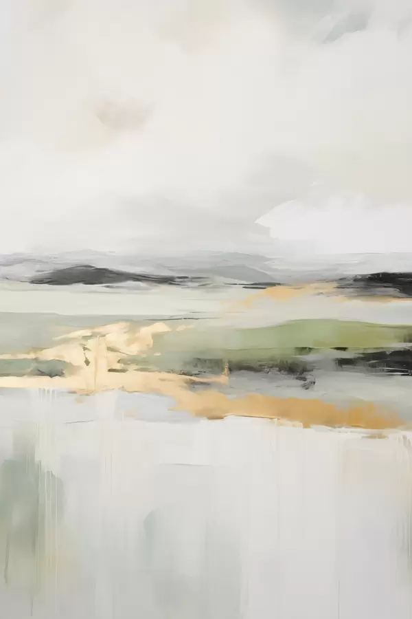 Poster Paesaggio astratto con accenti gialli, una composizione minimalista di terra, acqua e cielo, con colori tenui Nr f46269