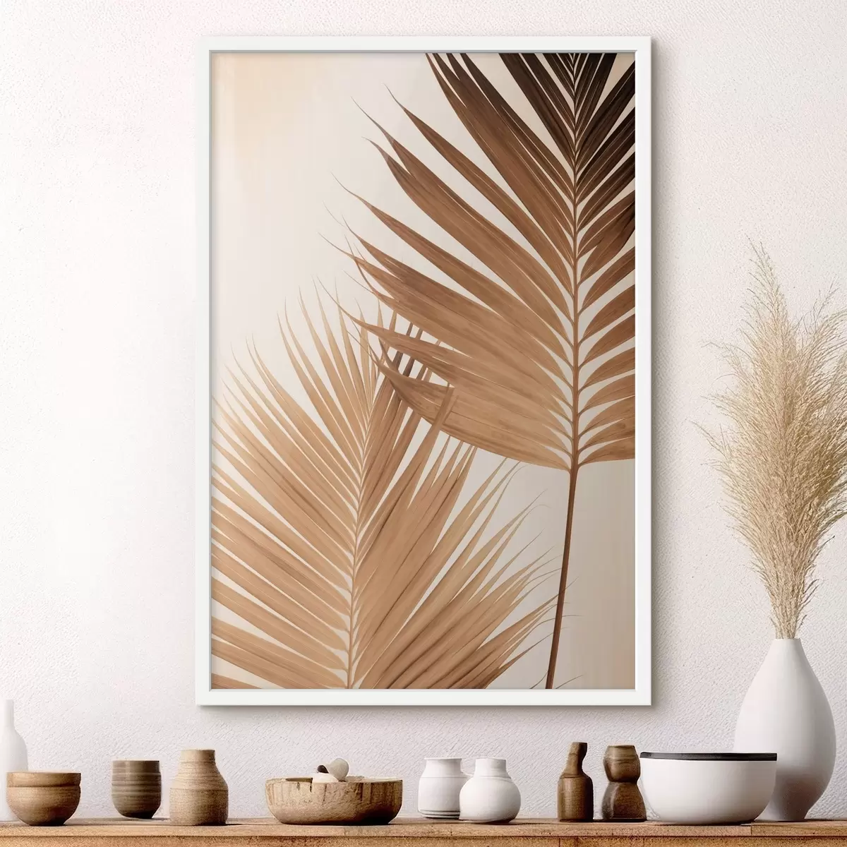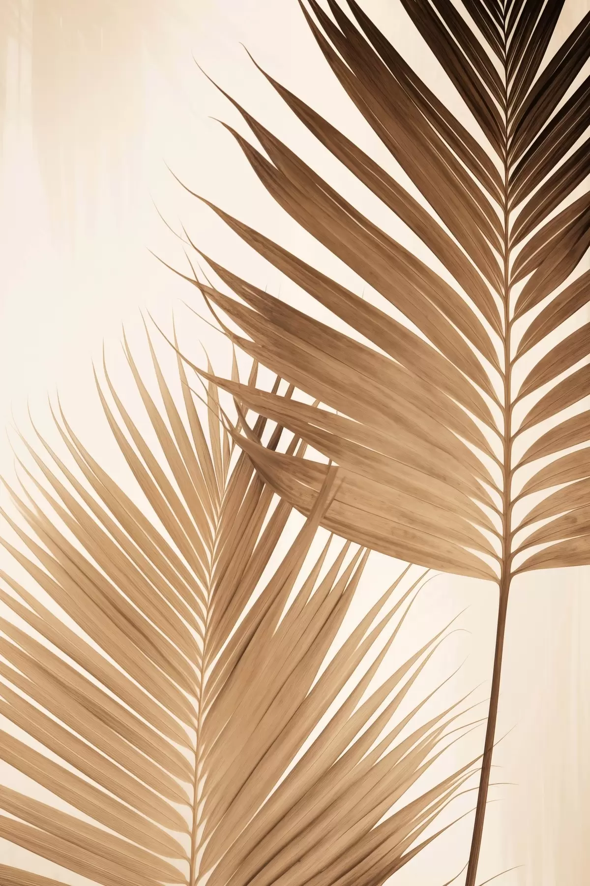 Poster Foglie di palma nei toni del marrone, sfondo neutro, stile minimalista, illuminazione naturale, atmosfera tropicale Nr f46274