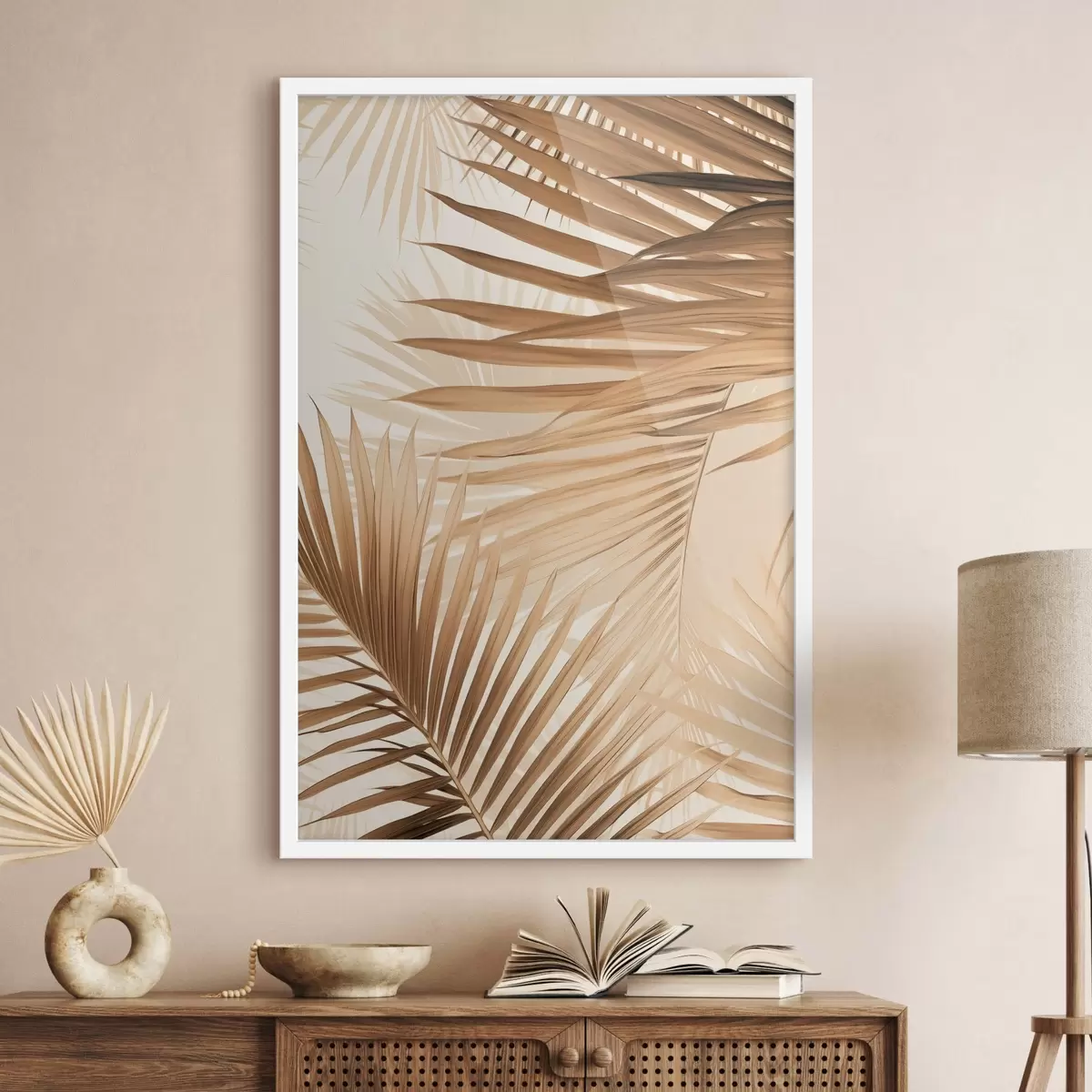 Poster Foglie di palma astratte nei toni del marrone, tropicali, botaniche, natura, minimaliste, eleganti, design moderno f46275