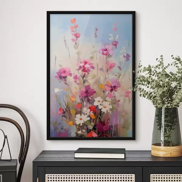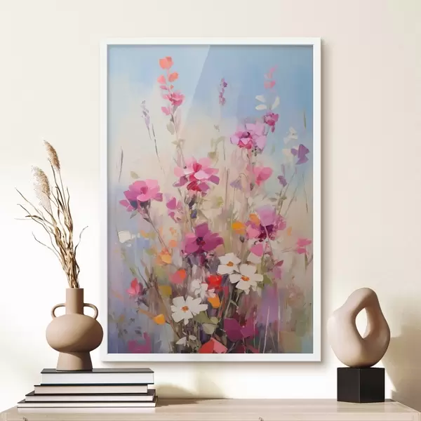 Poster Fiori dai vivaci colori rosa, bianco e verde su uno sfondo tenue dai toni pastello Nr f46278