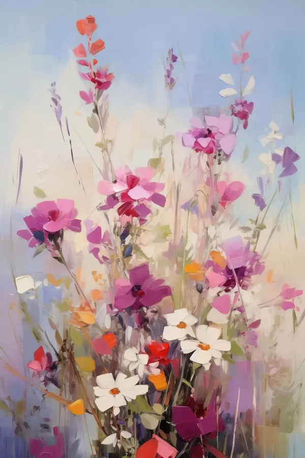 Poster Fiori dai vivaci colori rosa, bianco e verde su uno sfondo tenue dai toni pastello Nr f46278