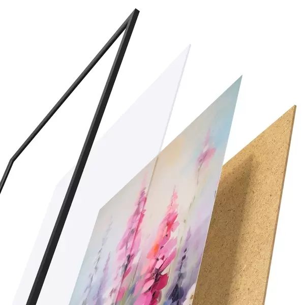 Il poster è composto da cornice, plexiglass, immagine stampata e supporto in truciolato. Il poster può essere immediatamente appeso alla parete grazie ai supporti sul retro.