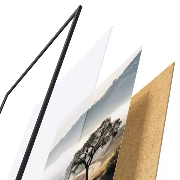 Il poster è composto da cornice, plexiglass, immagine stampata e supporto in truciolato. Il poster può essere immediatamente appeso alla parete grazie ai supporti sul retro.