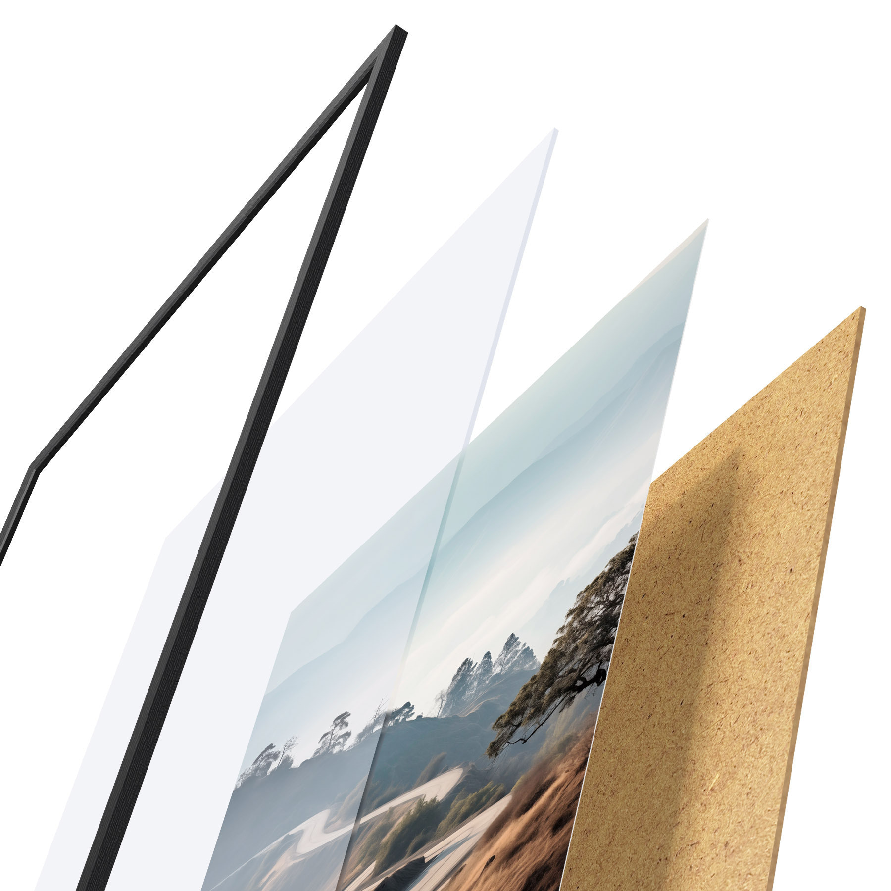 Il poster è composto da cornice, plexiglass, immagine stampata e supporto in truciolato. Il poster può essere immediatamente appeso alla parete grazie ai supporti sul retro.