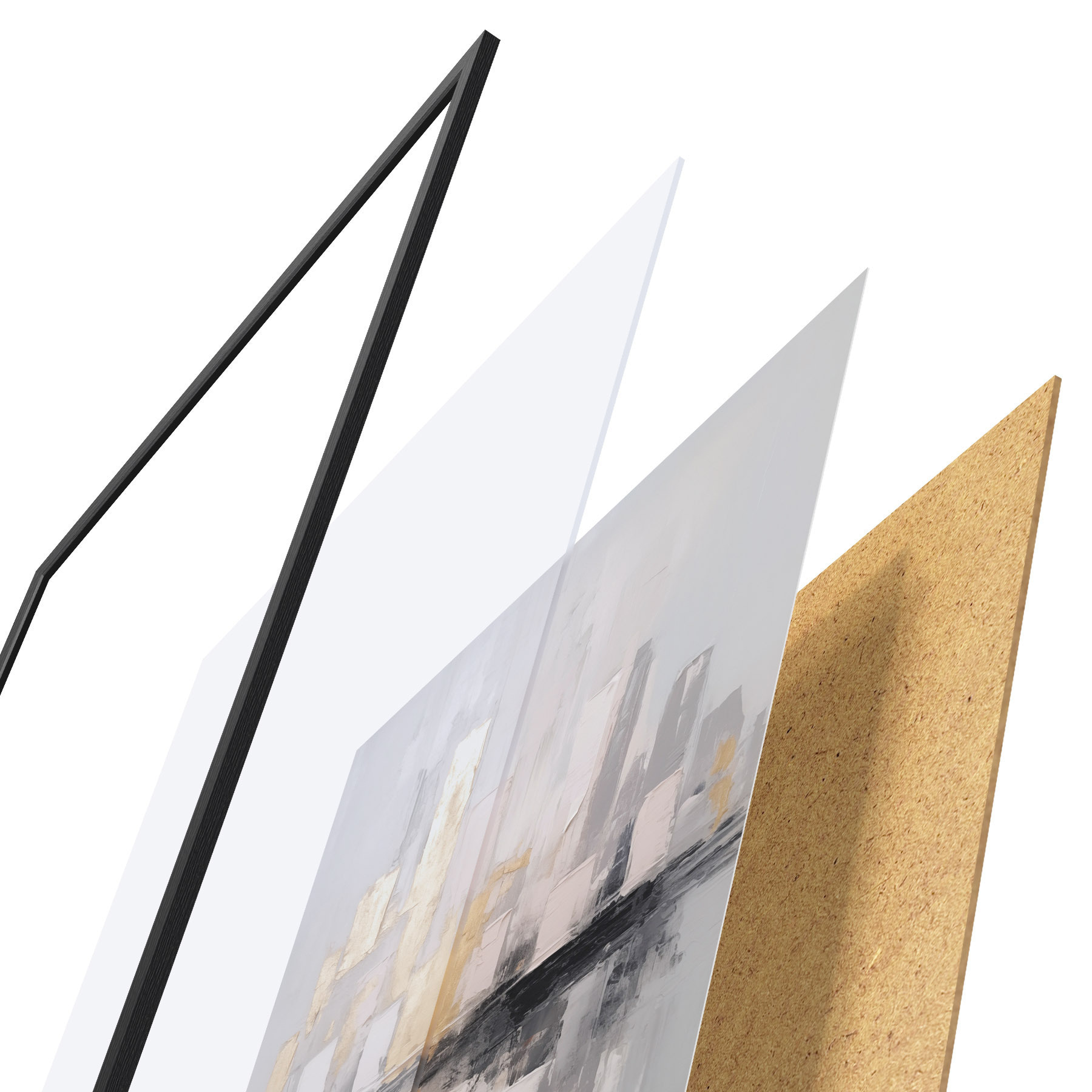 Il poster è composto da cornice, plexiglass, immagine stampata e supporto in truciolato. Il poster può essere immediatamente appeso alla parete grazie ai supporti sul retro.