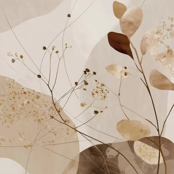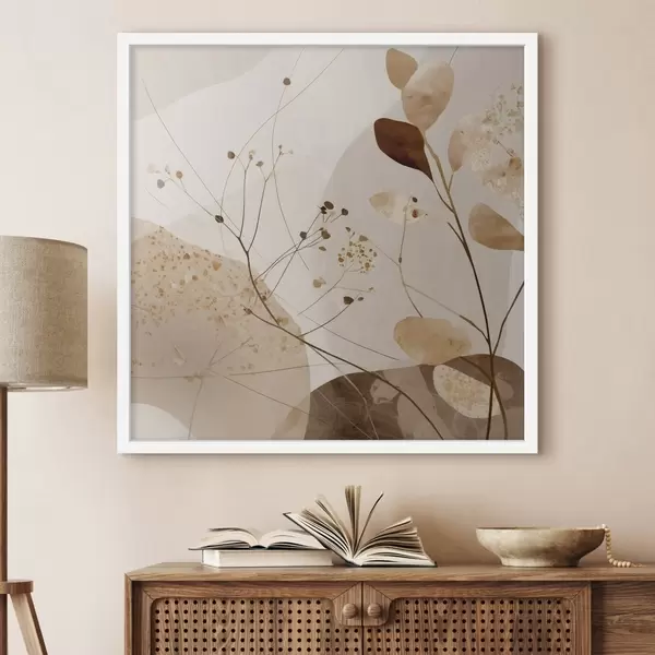 Poster Forme astratte e motivi vegetali nei toni del beige Nr f46309
