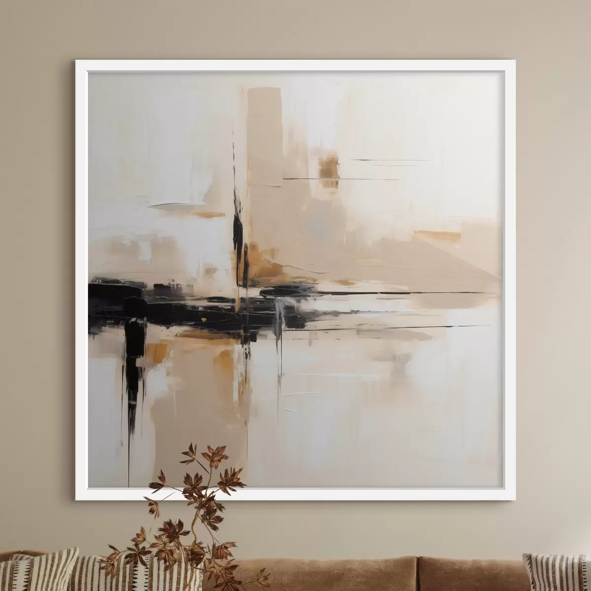 Poster Beige e nero, astrazione verticale in stile minimalista f46326