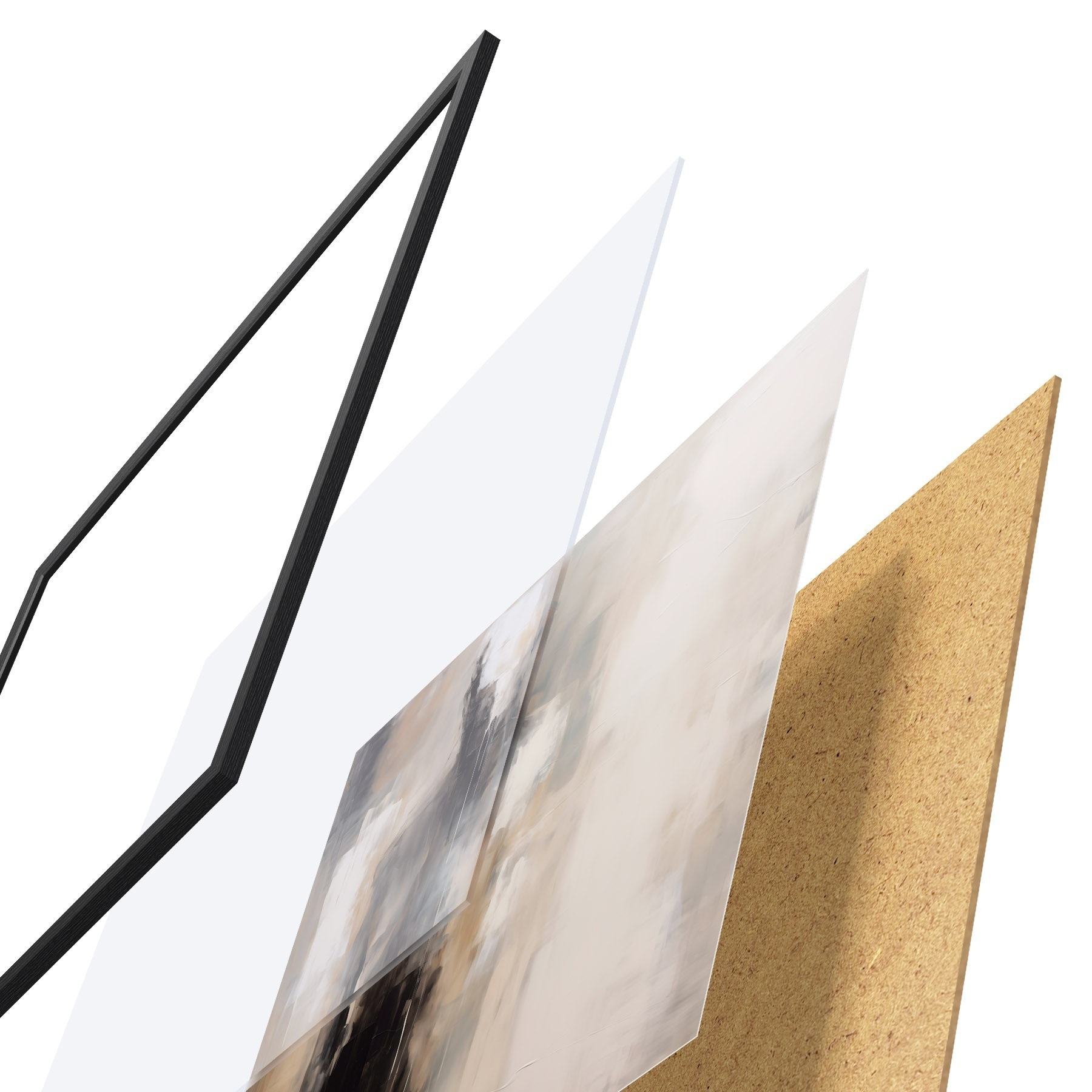 Il poster è composto da cornice, plexiglass, immagine stampata e supporto in truciolato. Il poster può essere immediatamente appeso alla parete grazie ai supporti sul retro.