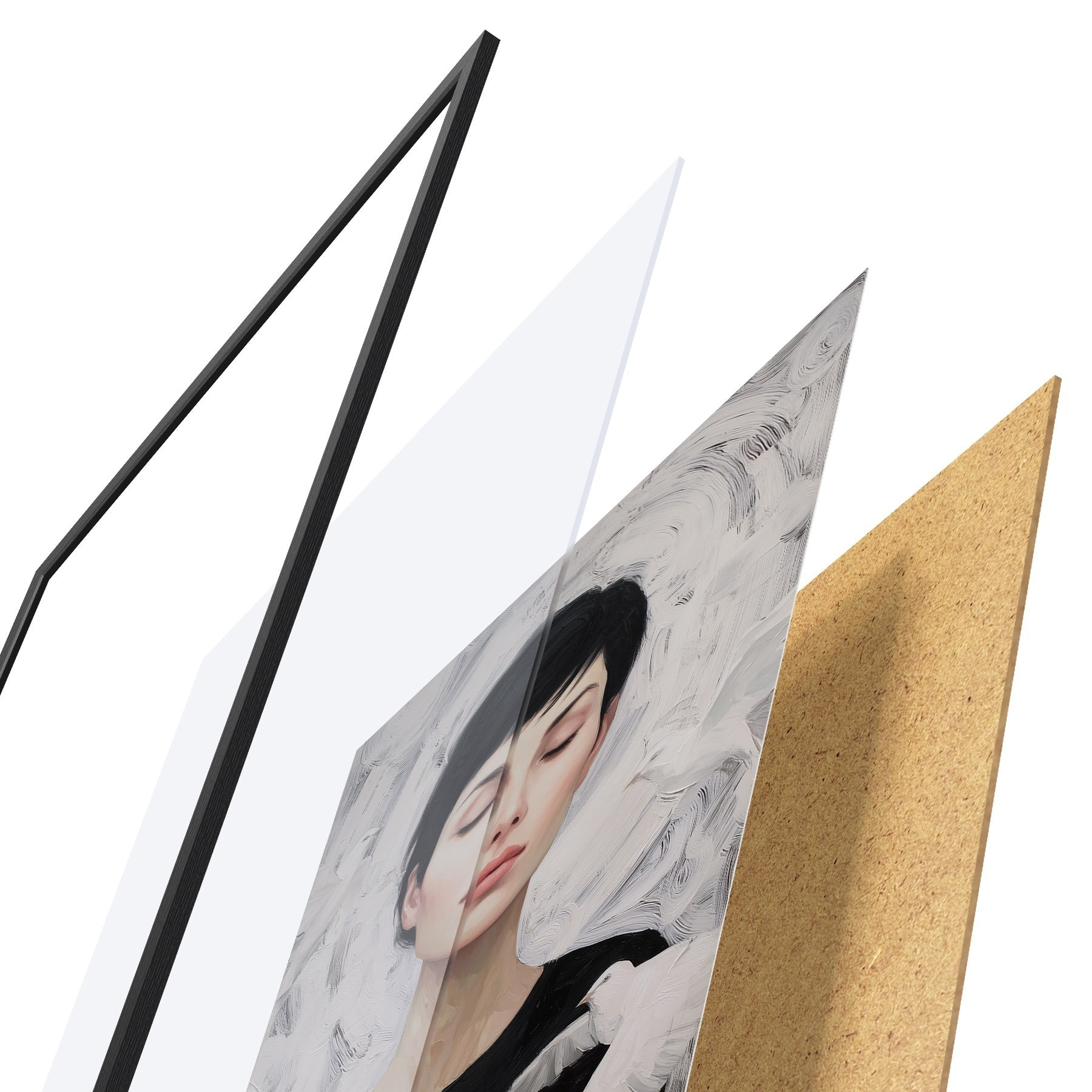 Il poster è composto da cornice, plexiglass, immagine stampata e supporto in truciolato. Il poster può essere immediatamente appeso alla parete grazie ai supporti sul retro.