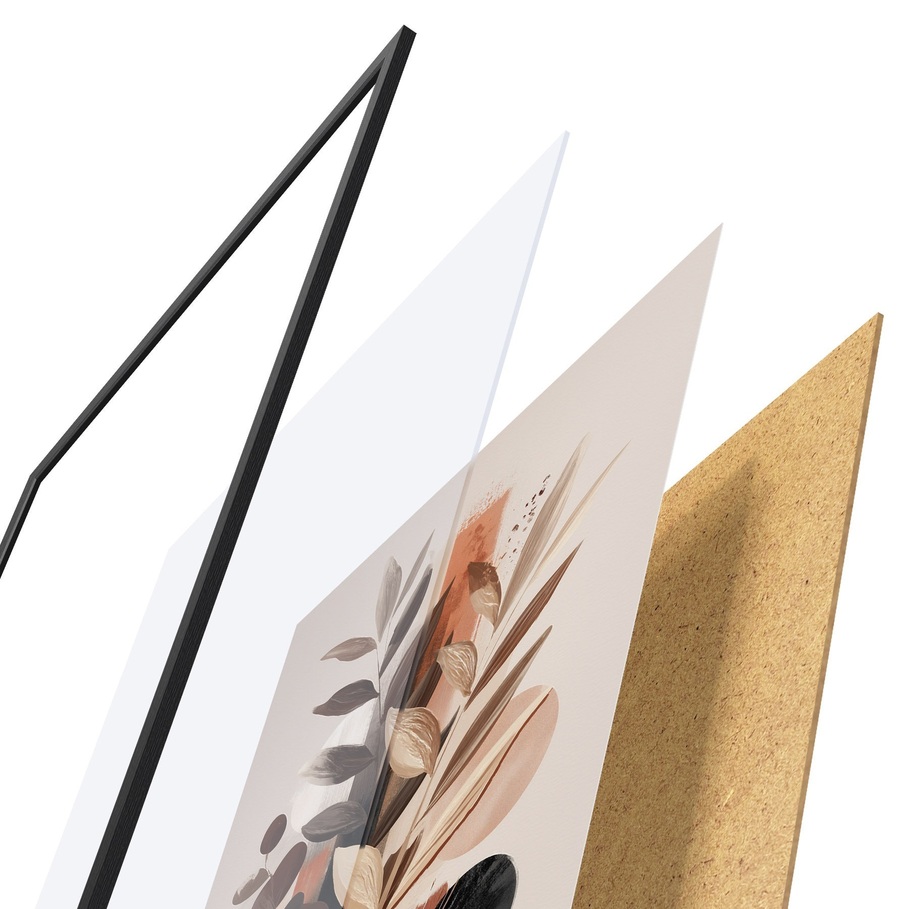 Il poster è composto da cornice, plexiglass, immagine stampata e supporto in truciolato. Il poster può essere immediatamente appeso alla parete grazie ai supporti sul retro.