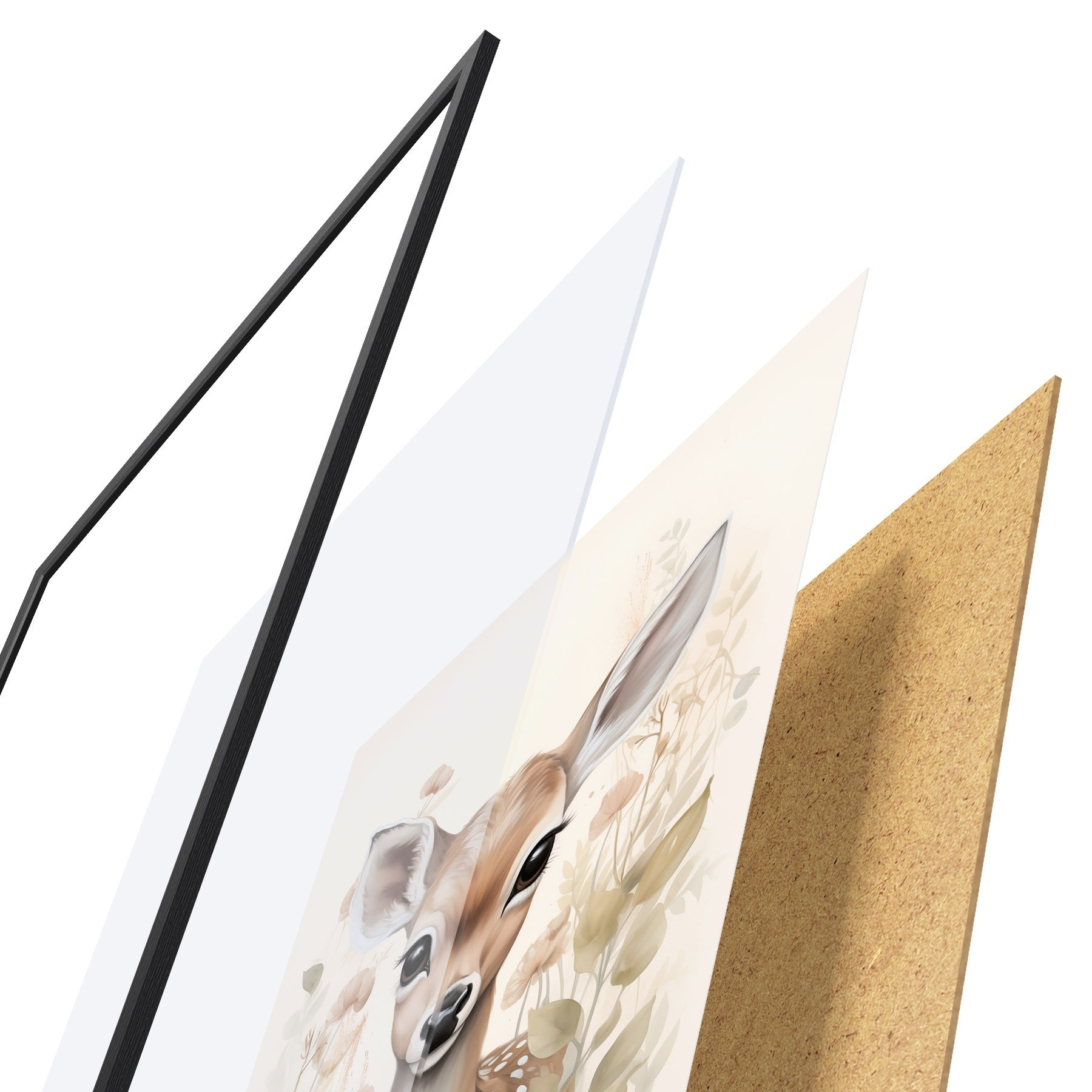 Il poster è composto da cornice, plexiglass, immagine stampata e supporto in truciolato. Il poster può essere immediatamente appeso alla parete grazie ai supporti sul retro.