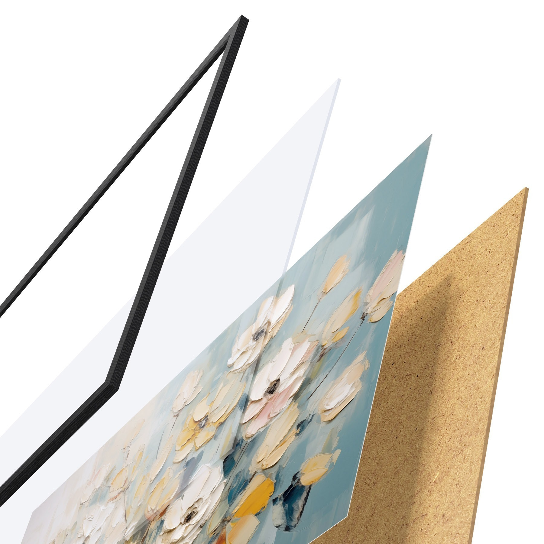 Il poster è composto da cornice, plexiglass, immagine stampata e supporto in truciolato. Il poster può essere immediatamente appeso alla parete grazie ai supporti sul retro.