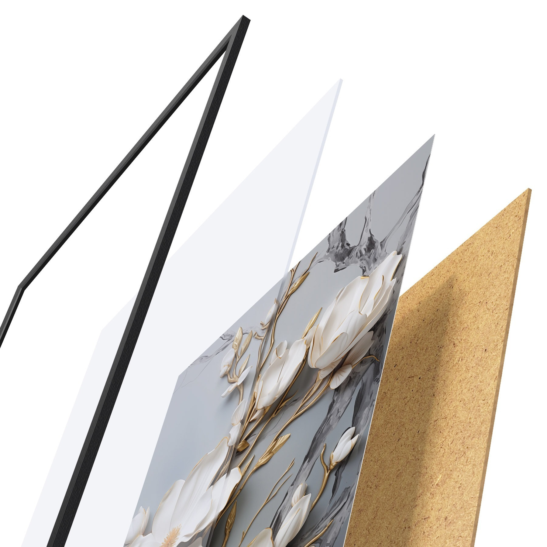 Il poster è composto da cornice, plexiglass, immagine stampata e supporto in truciolato. Il poster può essere immediatamente appeso alla parete grazie ai supporti sul retro.