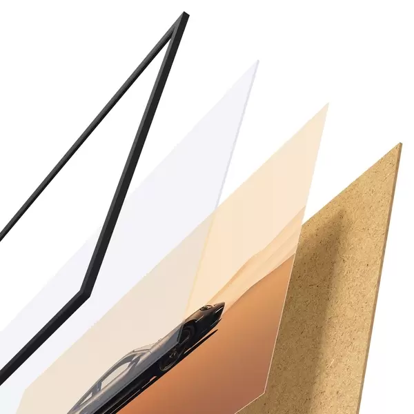 Il poster è composto da cornice, plexiglass, immagine stampata e supporto in truciolato. Il poster può essere immediatamente appeso alla parete grazie ai supporti sul retro.