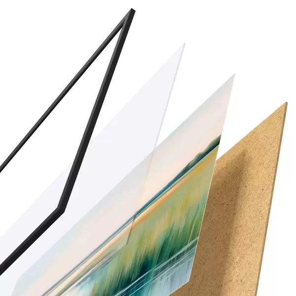 Il poster è composto da cornice, plexiglass, immagine stampata e supporto in truciolato. Il poster può essere immediatamente appeso alla parete grazie ai supporti sul retro.