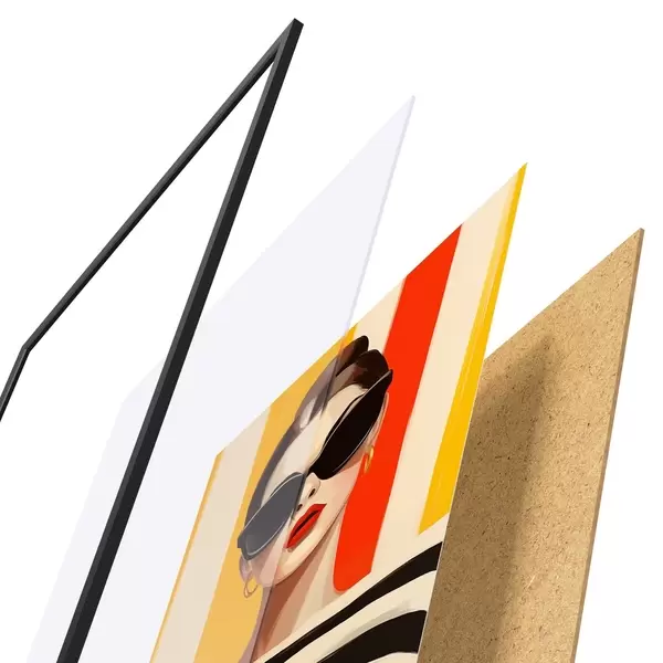 Il poster è composto da cornice, plexiglass, immagine stampata e supporto in truciolato. Il poster può essere immediatamente appeso alla parete grazie ai supporti sul retro.