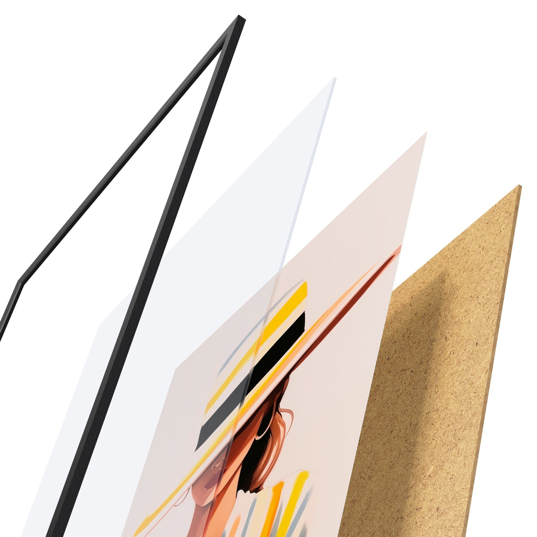 Il poster è composto da cornice, plexiglass, immagine stampata e supporto in truciolato. Il poster può essere immediatamente appeso alla parete grazie ai supporti sul retro.