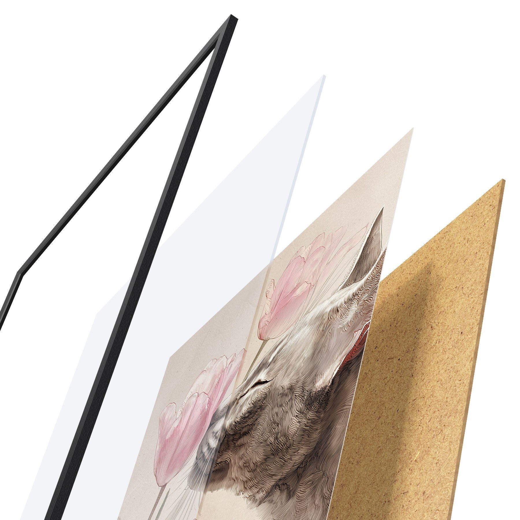 Il poster è composto da cornice, plexiglass, immagine stampata e supporto in truciolato. Il poster può essere immediatamente appeso alla parete grazie ai supporti sul retro.
