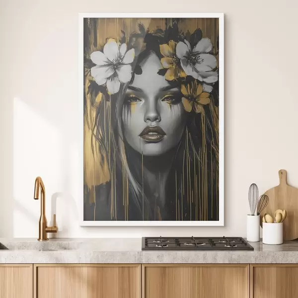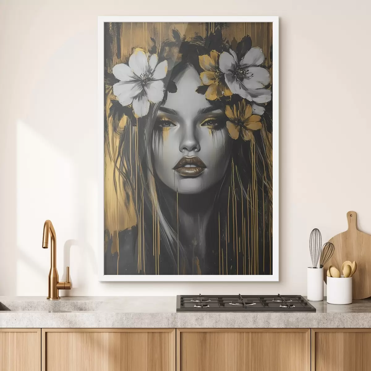 Poster Ritratto astratto di una donna con fiori Nr f46454