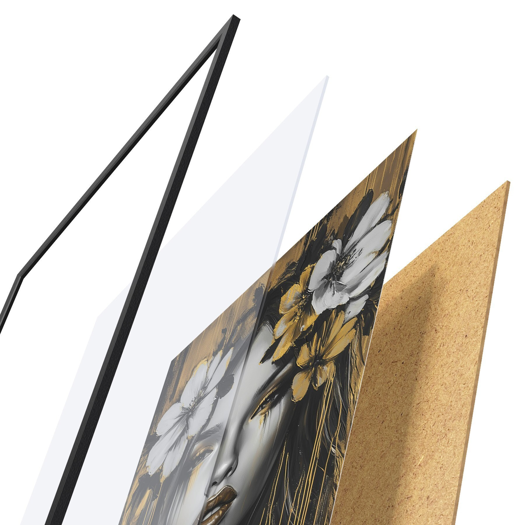 Il poster è composto da cornice, plexiglass, immagine stampata e supporto in truciolato. Il poster può essere immediatamente appeso alla parete grazie ai supporti sul retro.
