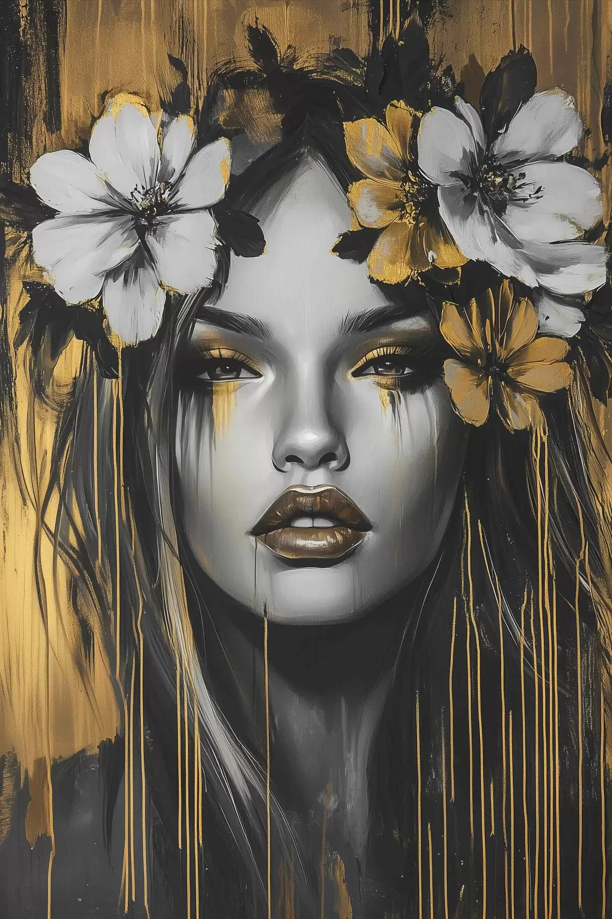 Poster Ritratto astratto di una donna con fiori Nr f46454
