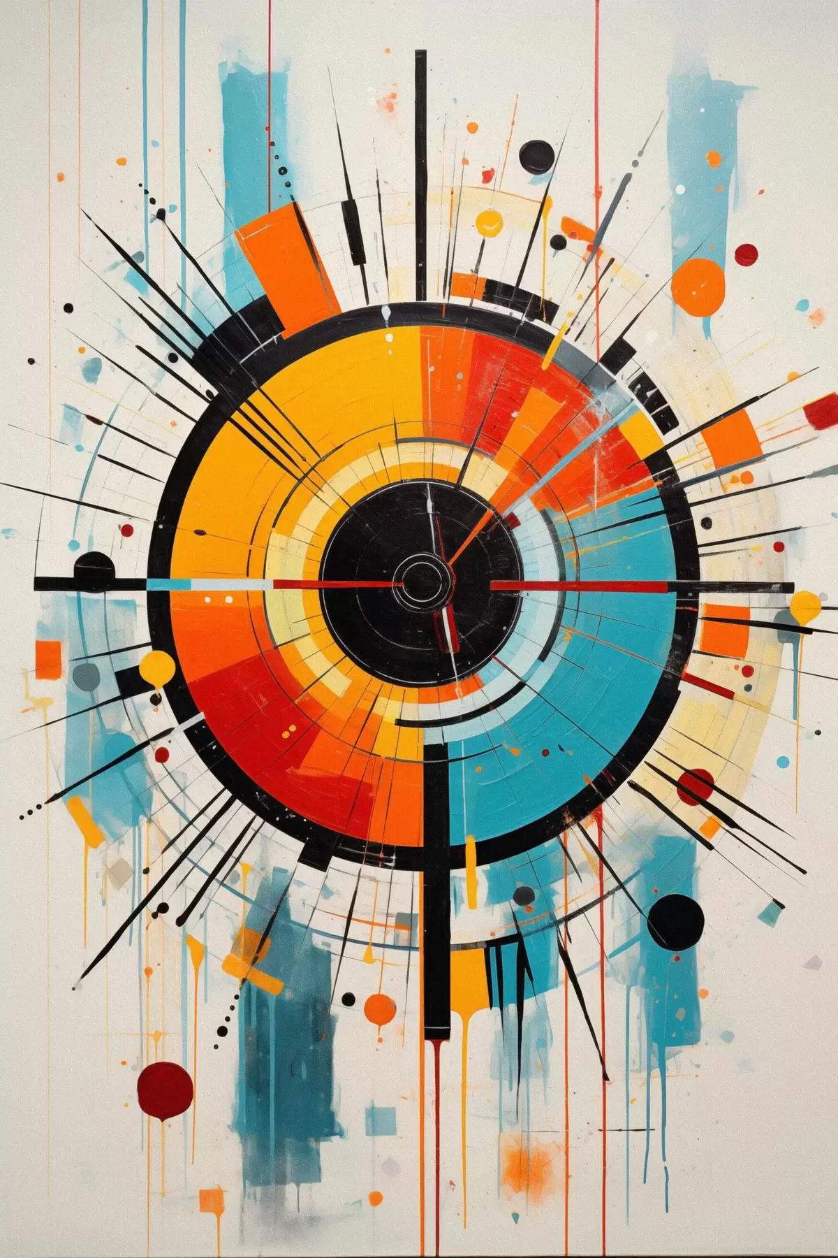 Poster Esplosione radiale in verde acqua, arancione e nero f46485