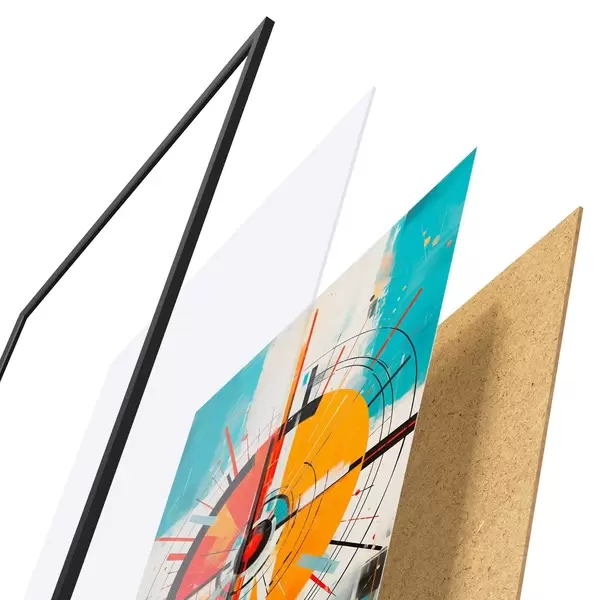 Il poster è composto da cornice, plexiglass, immagine stampata e supporto in truciolato. Il poster può essere immediatamente appeso alla parete grazie ai supporti sul retro.