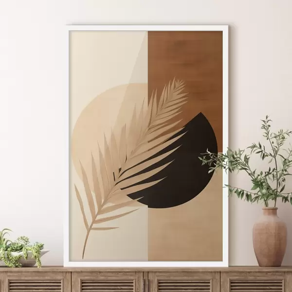 Poster Foglia di palma su terracotta e geometria color crema Nr f46490