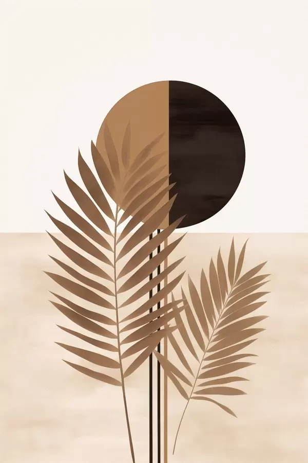 Poster Due foglie di palma con motivo a forma di sole con cerchio diviso Nr f46491