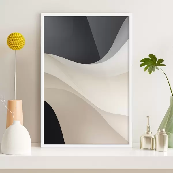 Poster Curve fluide stratificate in nero, crema e tortora f46492