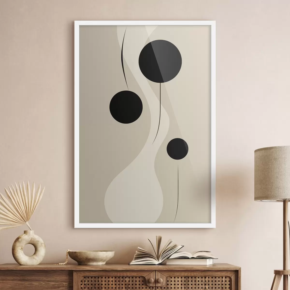 Poster Cerchi minimalisti su sfondo beige con accenti di linee fluide Nr f46496