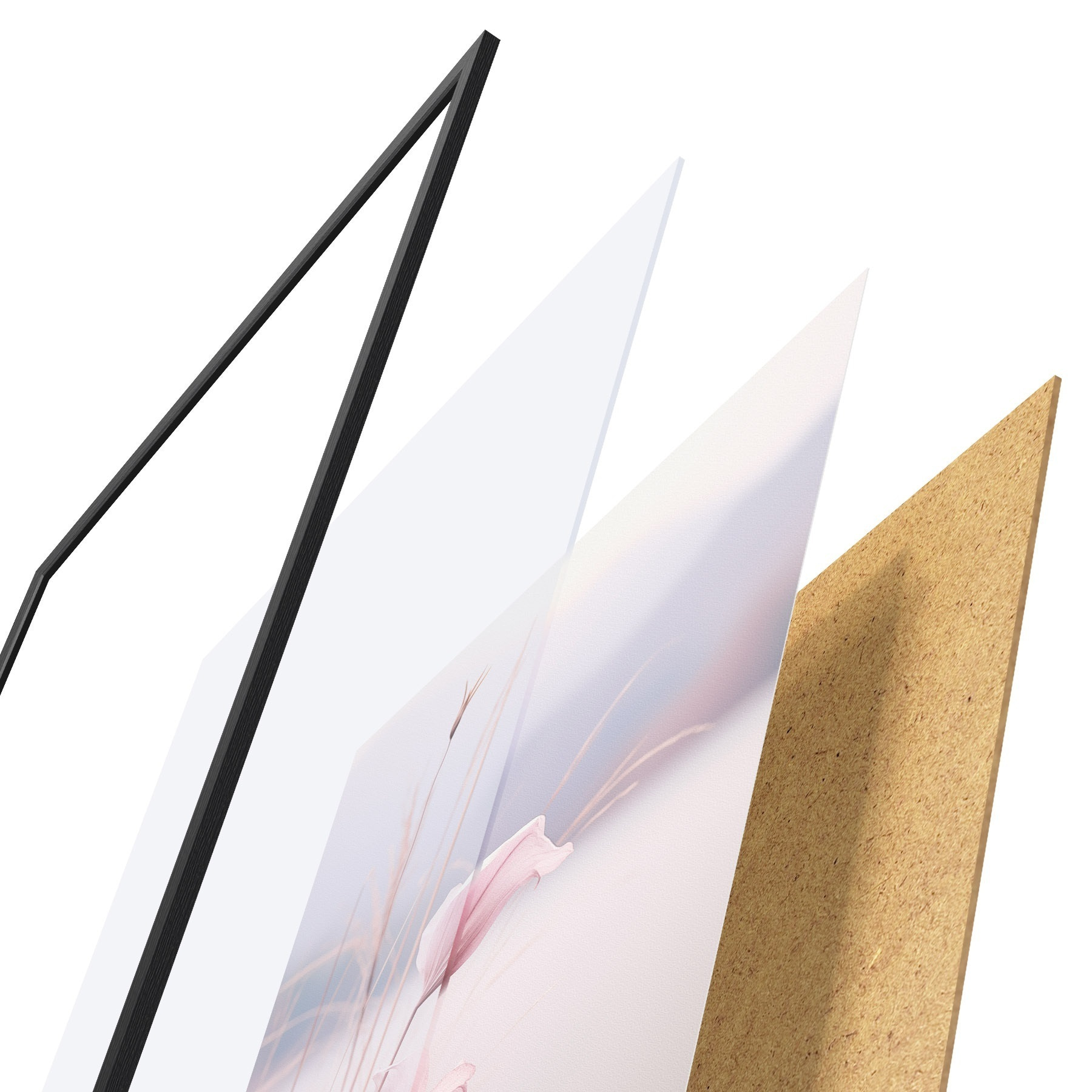 Il poster è composto da cornice, plexiglass, immagine stampata e supporto in truciolato. Il poster può essere immediatamente appeso alla parete grazie ai supporti sul retro.