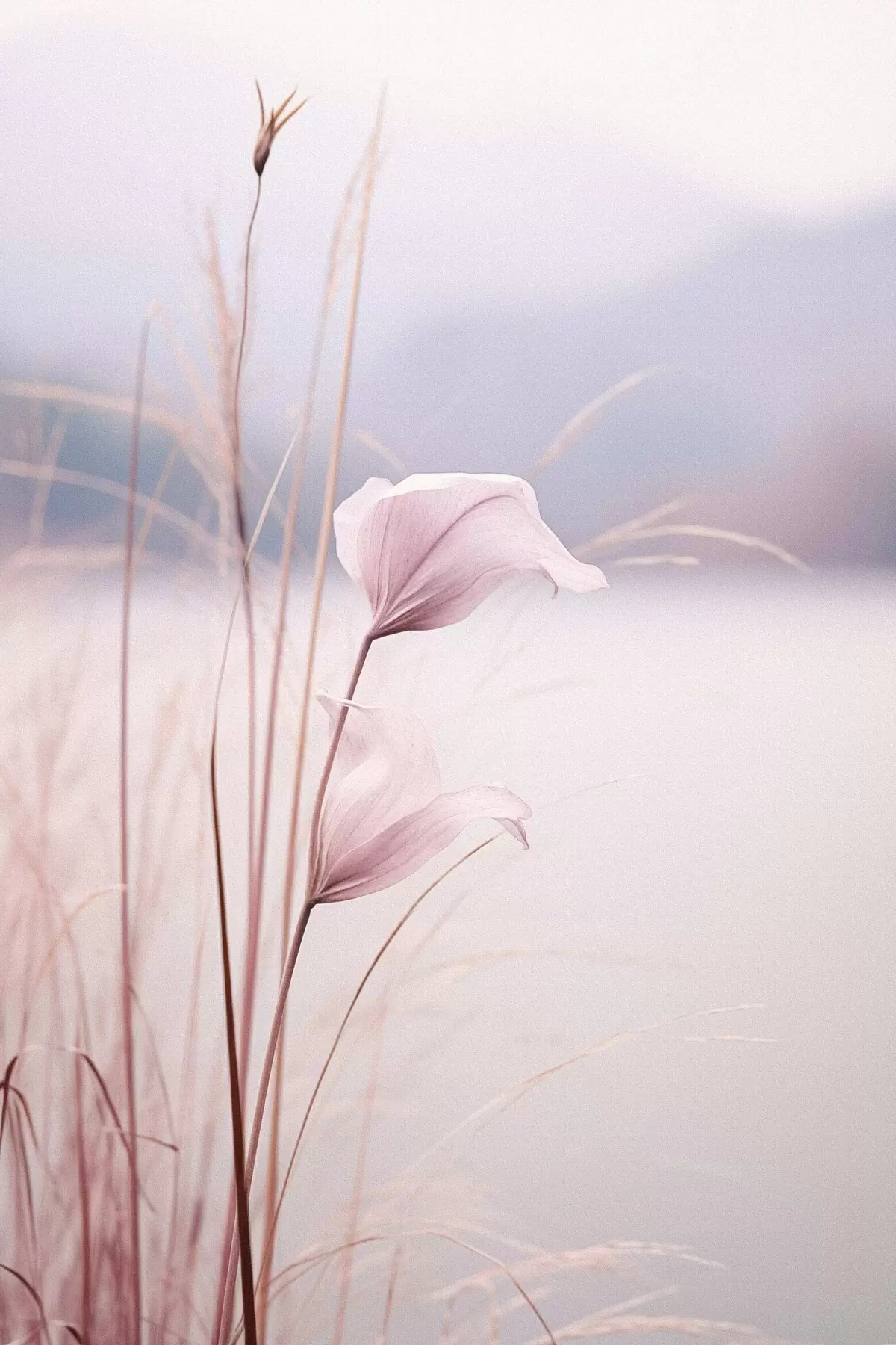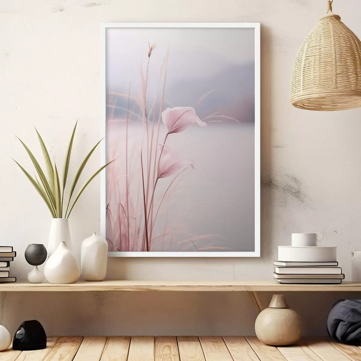 Poster Delicati fiori rosa in riva al lago tranquillo Nr f46503